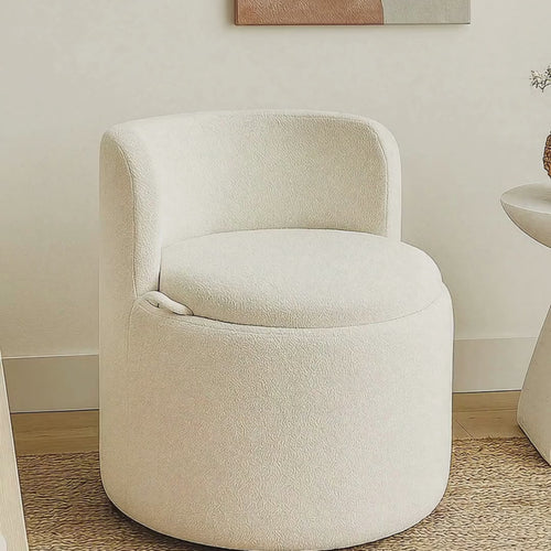 Experience a perfect blend of coziness, functionality, and style with the Snuggle Swivel Chair. Designed with soft boucle fabric and a plush cushioned seat, this chair invites you to relax while adding a chic touch to any room. Its 360-degree swivel base lets you move effortlessly, making it ideal for living rooms, bedrooms, dressing areas, or even home offices.