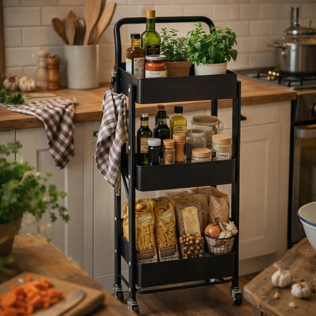• Sturdy & Stable Build: Reinforced metal frame supports heavy items securely.