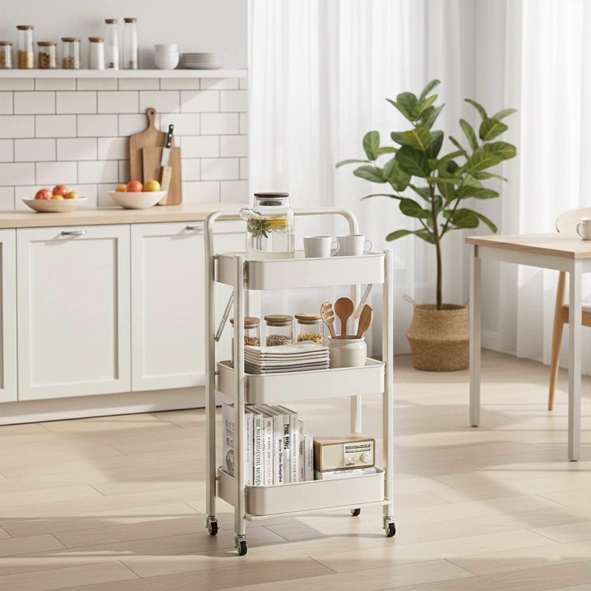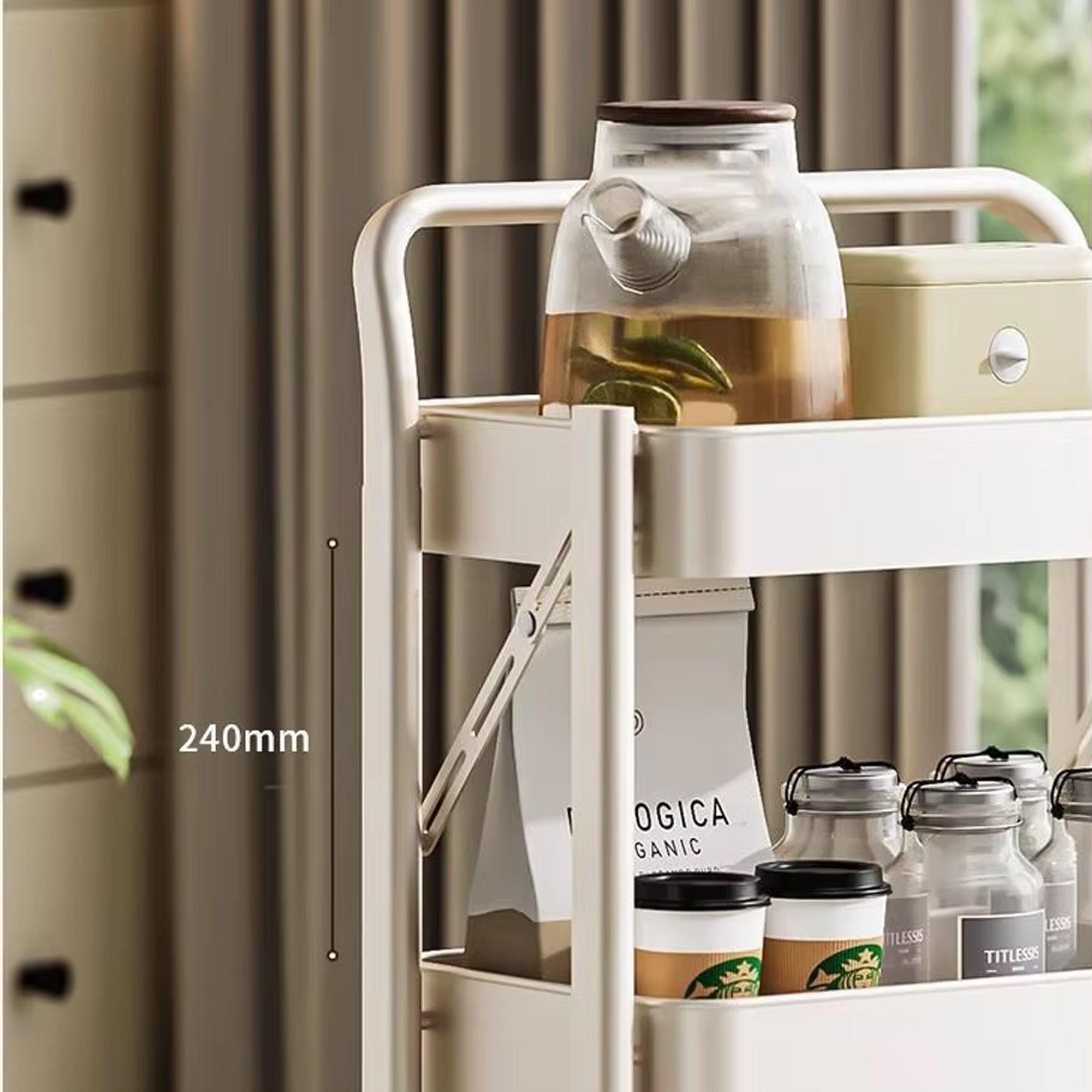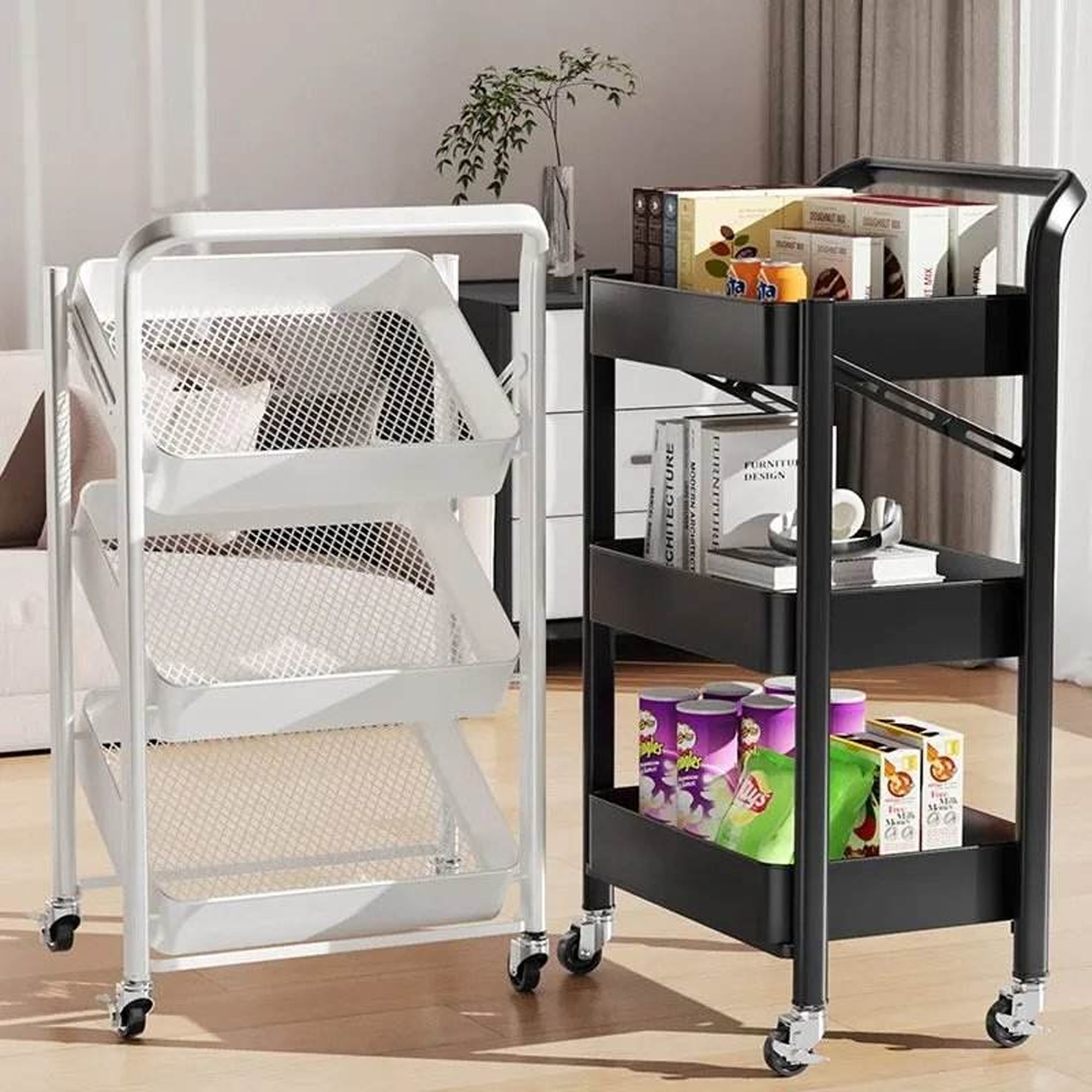 With its minimalist metal construction and easy-rolling caster wheels, the PivotTower Storage fits perfectly in kitchens, living rooms, offices, bathrooms, studios, and dorms. Store books, groceries, stationery, snacks, beauty supplies, or appliances—this tower handles it all while keeping your space clean and stylish.