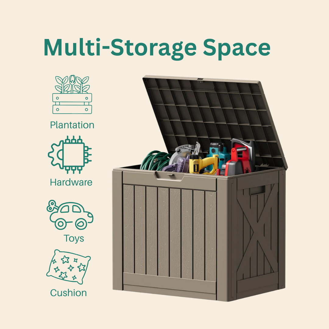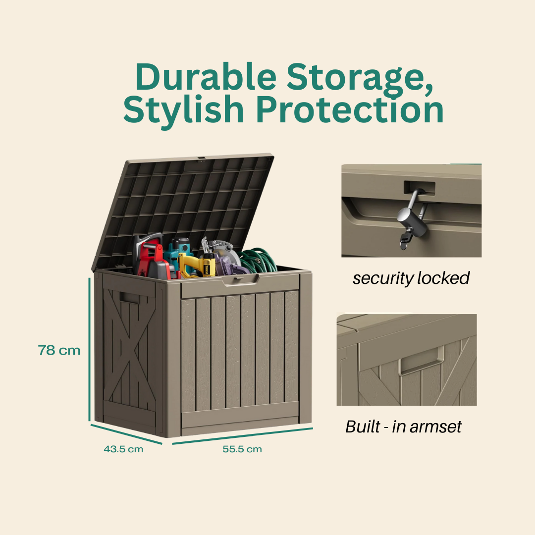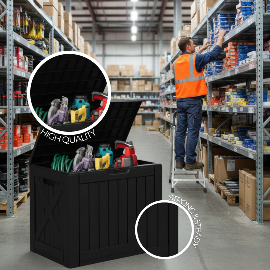StorraDeck, a weather-resistant and spacious storage solution designed for patios, decks, and gardens. Whether you need to store cushions, gardening tools, pool accessories, or packages, this resin deck box ensures your essentials stay dry, secure, and neatly organized—all while enhancing your outdoor aesthetics.