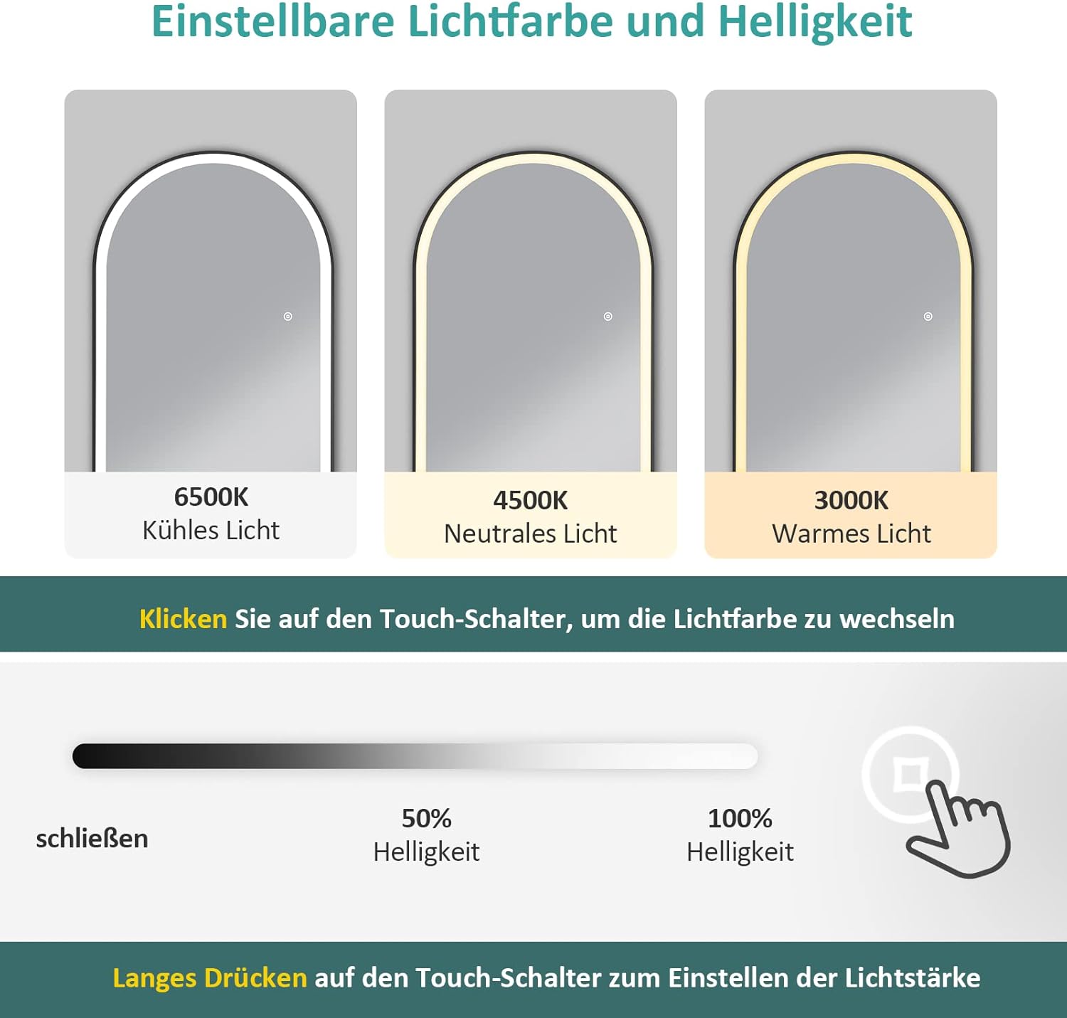 Light Color Options: Warm White (3000K) / Cool White (6000K) / Natural Light