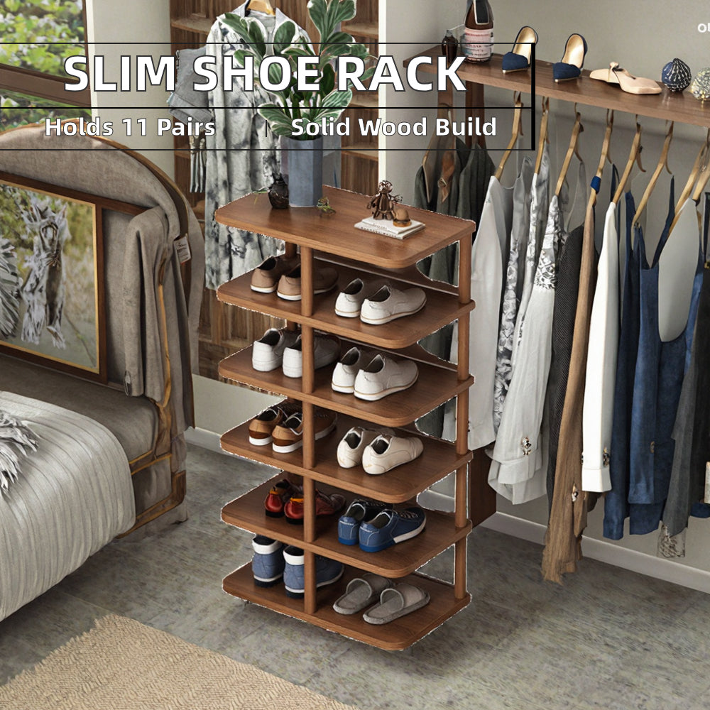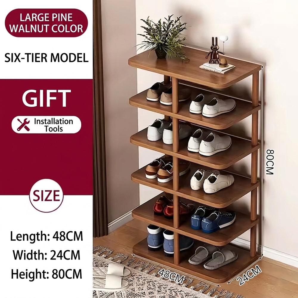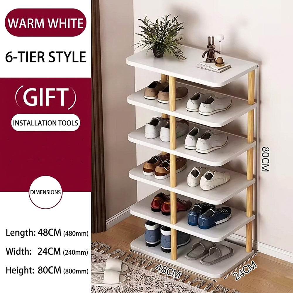 Six spacious levels provide structured storage for shoes, accessories, or essentials.